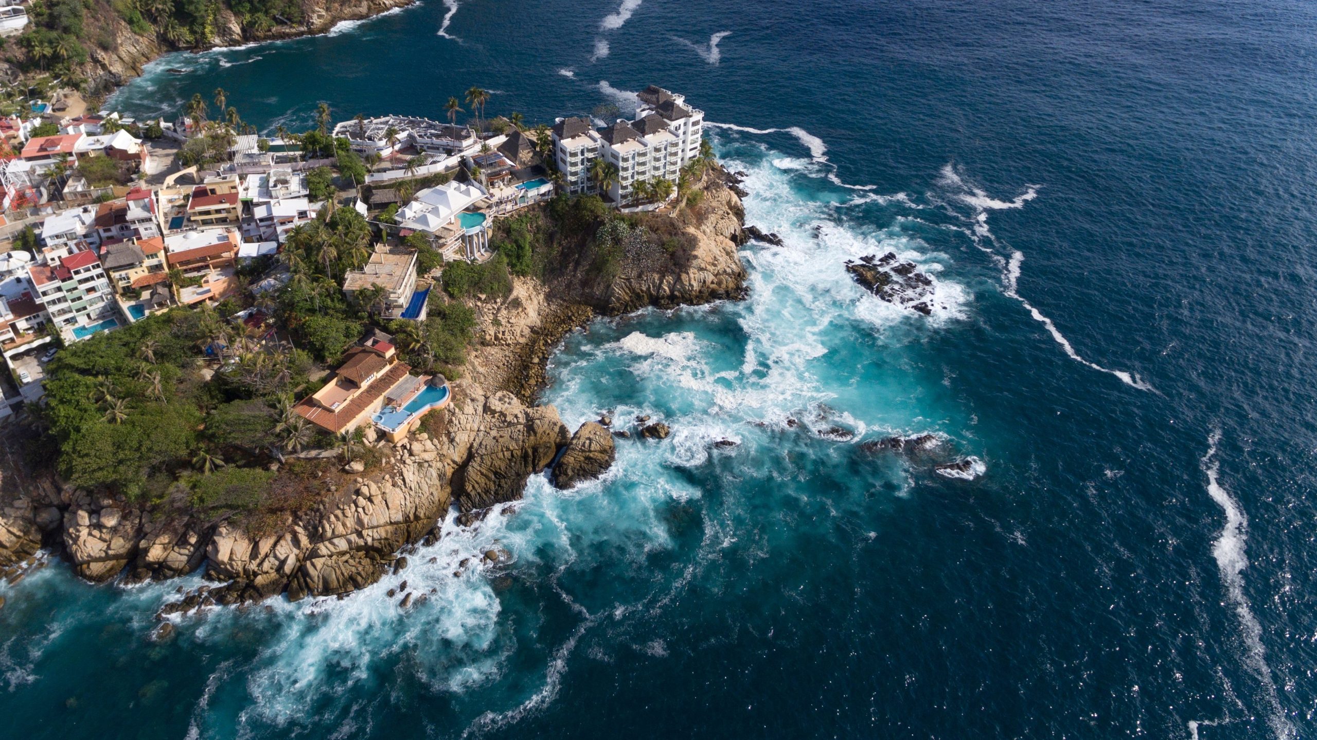 Las casas se aferran a los acantilados como balcones al Pacífico en esta panorámica de Acapulco, donde la sierra se encuentra con el mar en un contraste vibrante y lleno de historia.