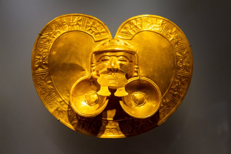 Brillo ancestral. Piezas precolombinas de oro revelan la maestría simbólica y espiritual de las culturas originarias de Colombia, hoy resguardadas en el Museo del Oro de Bogotá.